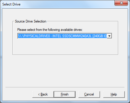 - Select the actual physical drive from the drop down list and click on Finish.