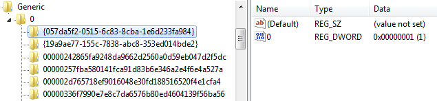 This key contains two GUID subkeys (CEBFF5CD Executable File Execution, F4E57C4B Shortcut File Execution): each subkey maintains a list of system objects such as program, shortcut, and control panel applets that a user has accessed.