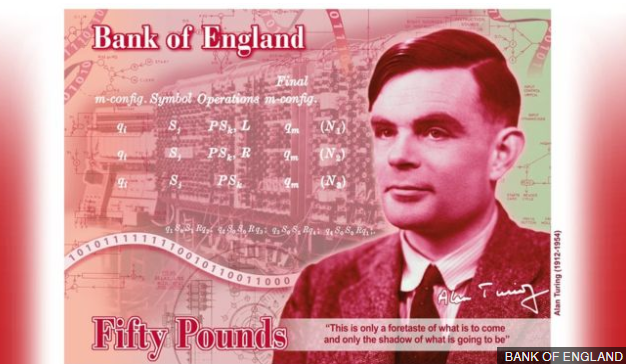 The new £50 note, our first £50 printed on polymer, will celebrate Alan Turing and his pioneering work with computers. As shown in the concept image, the design on the reverse of the note will feature: