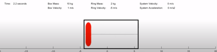 …picture a box on a frictionless surface. Inside that box is a rod, along which a ring can slide. If a spring inside the box gives the ring a push, the ring will slide along the rod one way while the box will recoil in the other. When the ring reaches the end of the box, it will bounce backwards, and the box’s recoil direction will switch too. This is action-reaction – also known as Newton’s third law of motion – and in normal circumstances, it restricts the box to wiggling back and forth