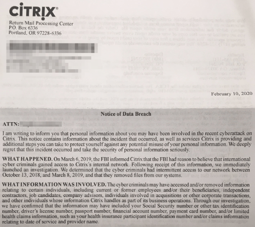 Networking software giant Citrix Systems says malicious hackers were inside its networks for five months between 2018 and 2019, making off with personal and financial data on company employees, contractors, interns, job candidates and their dependents. The disclosure comes almost a year after Citrix acknowledged that digital intruders had broken in by probing its employee accounts for weak passwords.